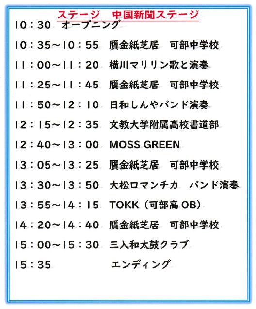 書道部は中国新聞可部中央販売所のステージで12時15分からパフォーマンスを披露します。
