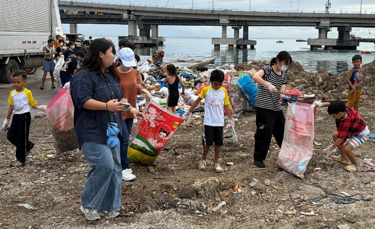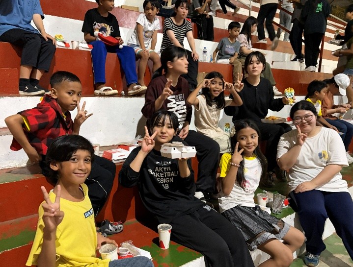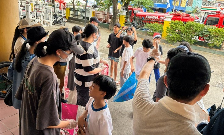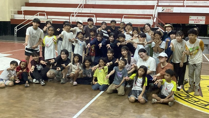 学校が終わった子どもたちと一緒にスラムの近くの港で清掃活動を行い、その後近くの体育館で交流し、夕食をいただきました。