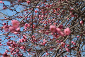 学校の敷地内にある梅の花が咲き始めました。