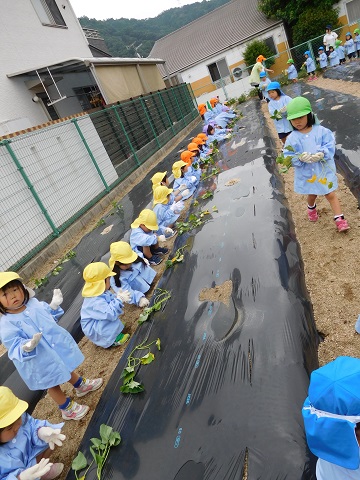 子どもたちが植えたサツマイモの苗、秋の収穫が楽しみです。