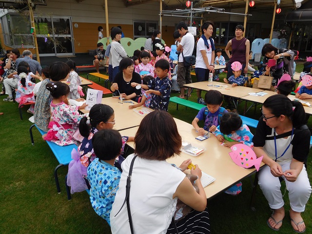 子供たちが楽しみにしていた「夏祭り」がありました。在園児・未就園児・卒園児・地域の皆様たくさんの方が参加してくださり始まりました。