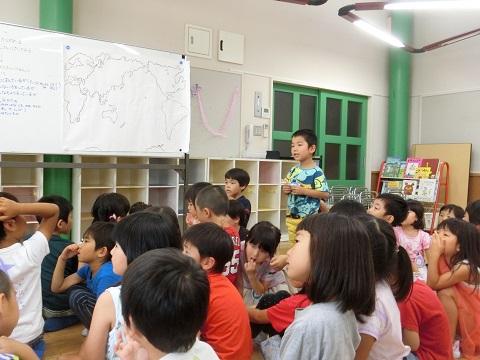 終業式では、園長先生から夏休みのすごし方を聞きました。夏休み、挨拶・お手伝い・夏見つけをがんばる子どもの姿があると思います。
