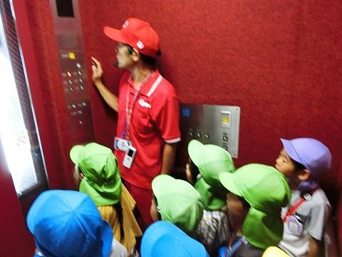 まずは、マツダスタジアムの入り口から入り、カープの赤のエレベーターで球場の裏側へ向かいました。