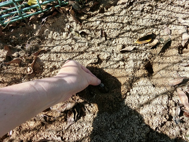 前回植えたサツマイモを、フェンス越しに見ていました。
