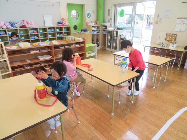 チャレンジタイム後は、手洗い・お茶休憩をしました。