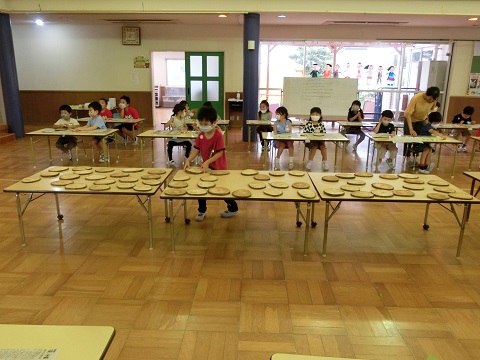 園庭でクラスごとに円になって、歌をうたいました。なかなかないクラスの仲間と集う機会が持てました。