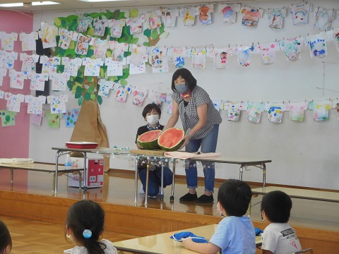 園長先生から、夏休みの過ごし方などの話を聞きました。