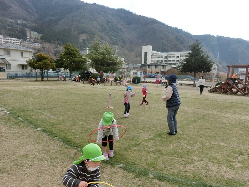 このあと、鬼の的に向けて、新聞紙で作った自分の豆を投げました。