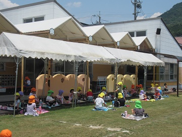園庭には、ミスト! 気持ちいいね!!
