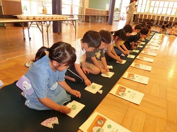 「美味しい」「少し 苦い」といいながら、ほとんどの年長さんがお抹茶を全部いただきました。