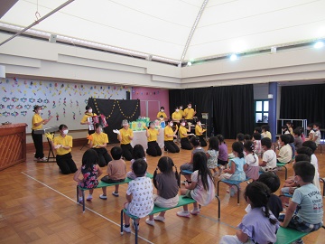 しっかり 楽しんだ後は、園庭で、みんなで盆踊り!!