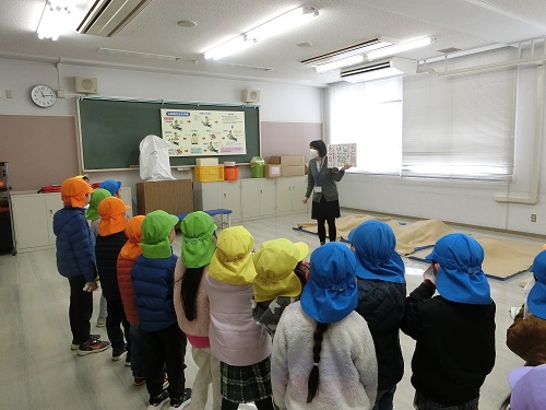 子どもたちは、園での避難訓練でもいつもしているお約束なので、しっかり覚えていました。