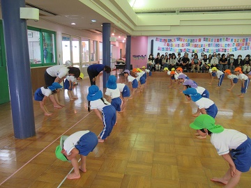 子どもたちは、体操が大好きです。保護者の方も参観に来てくださいました。