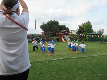 かけっこ 笛の音をよく聞いて 白い線の近くを走ったよ!!