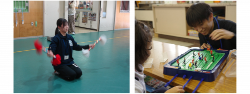 実習では、宿題の見守り、銭太鼓の練習、将棋やボードゲーム遊び、読書など、子どもたちが日頃行っている生活の様子を知り、ともに様々な活動をさせていただきました。