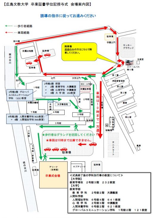 大学構内の混雑を回避するため、車両は一度入構されますと、開式の10時までは出庫することができませんので予めご了承ください。