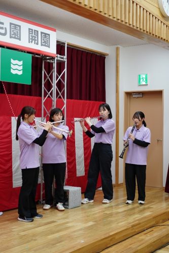 令和8年3月27日(金),広島市可部南認定こども園のオープニングセレモニーに教育学科音楽ゼミの3年生が参加しました。