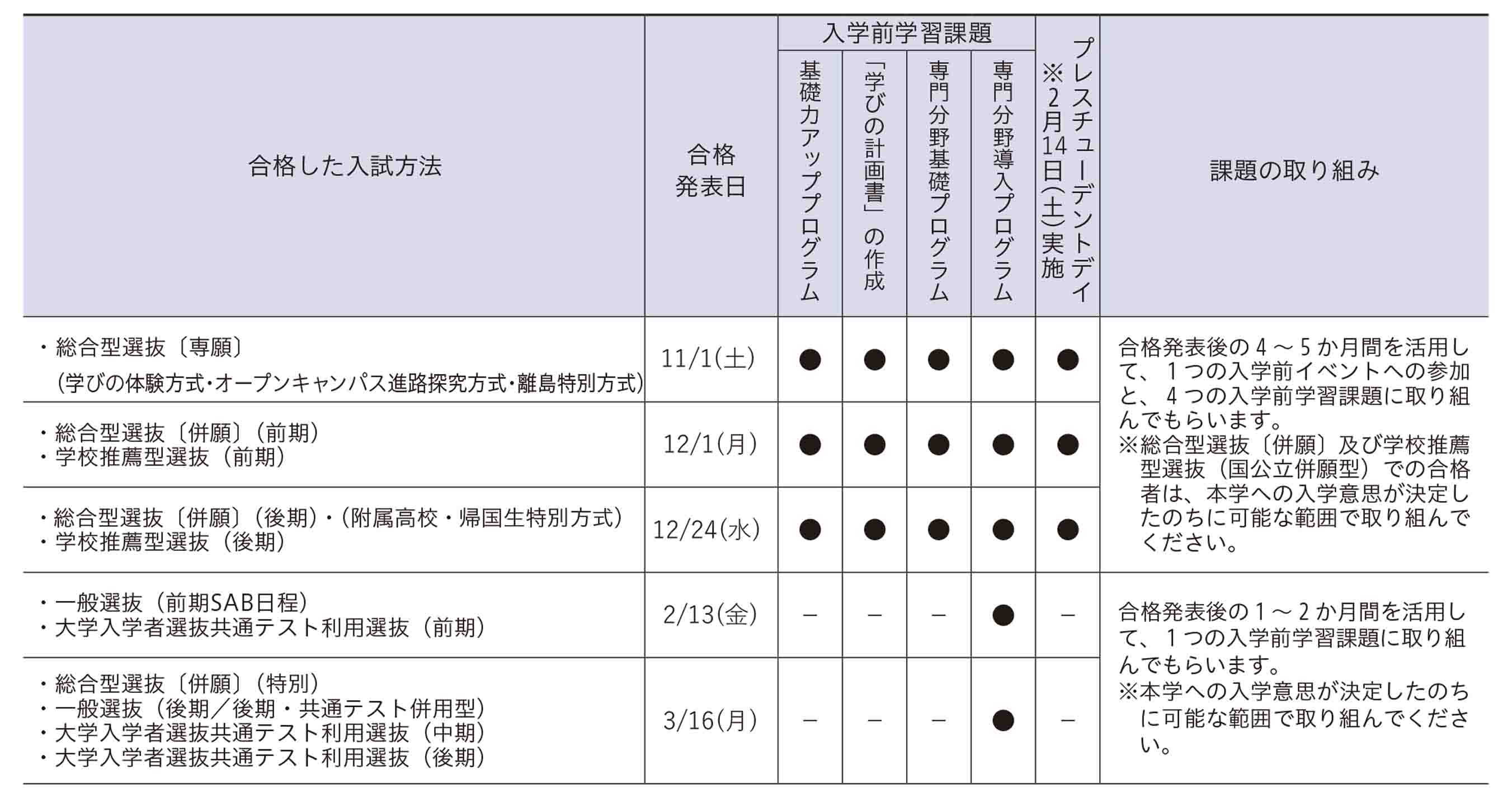 入学者選抜合格者専用ページ(各課題の詳細はこちら)