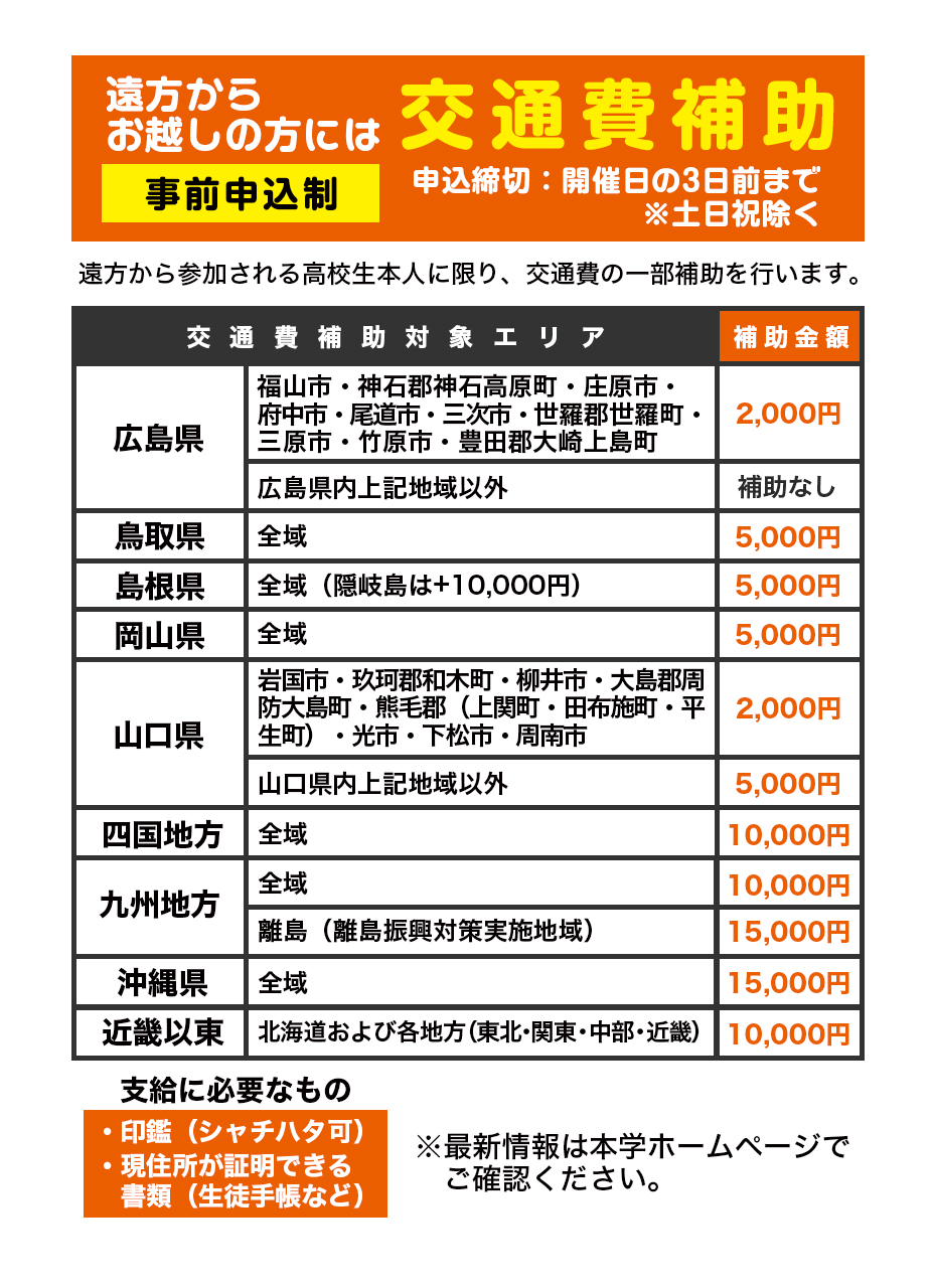 交通費補助情報はこちら! プログラム紹介(3~8月オープンキャンパス)