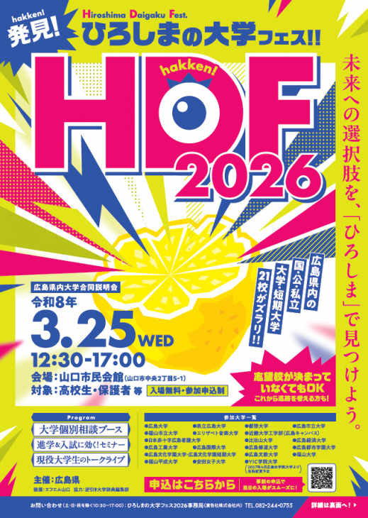*お知らせ広島県内大学合同説明会(令和8年3月25日開催。山口市民会館)に参加します。