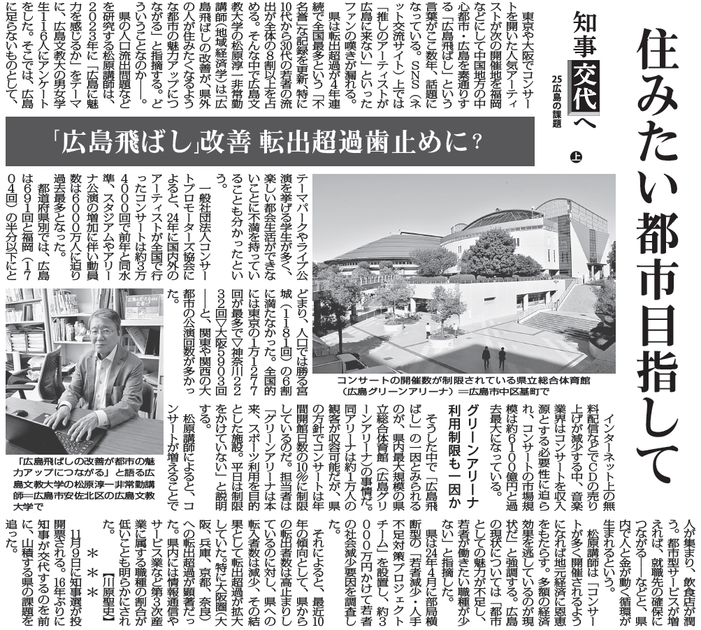 【毎日新聞掲載】住みたい都市目指して 「広島飛ばし」改善転出超過歯止めに?