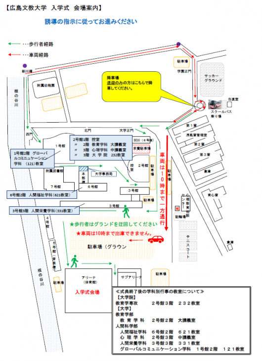 大学構内の混雑を回避するため、車両は一度入構されますと、開式の10時までは出庫することができませんので予めご了承ください。