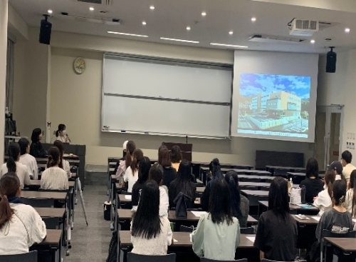 精神科病院に興味のある学生や、就職先に悩んでいる学生、学生生活の過ごし方を悩んでいる学生は特に参考になったのではないかと思います。講演途中に学生に向けたクイズも用意してくださり、学生は頭を悩ませていましたが、正解が発表されると盛り上がっていました。