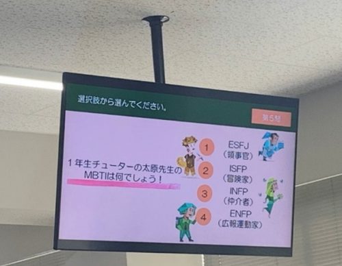 また、その他にも「文教クイズ」や「以心伝心ゲーム」など、楽しいゲームを通して先輩・後輩の交流もでき、だいぶ新入生の緊張が解けたようでした。学生ならではのクイズの内容でユーモアがあり大変盛り上がりました。