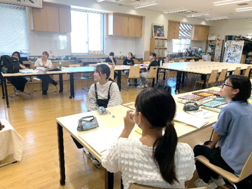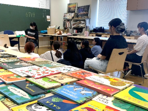 この日は、学生が「わらべうた」と選んだ一冊の絵本の読み聞かせを行いました。絵本の持ち方から、読むスピード、見せ方など丁寧に気づいた部分の指導を受け、次回に活かしていきます。聞き役の学生も、発表した学生に良かった点、改善したほうが良い点を共有します。ディスカッションを行い、自己向上を図ります。
