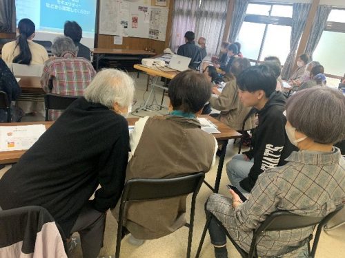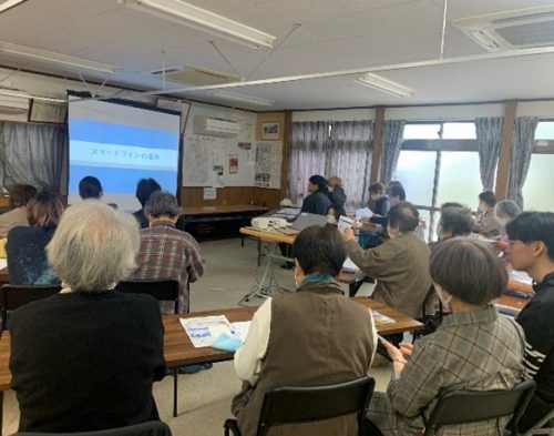 活動内容は、包括職員主体で携帯電話の使い方等の動画を見て説明をしたのち、地域の方が操作で難しいところや疑問などがでてきたら学生がわかる範囲で手伝い、サポートをするというものでした。地域包括支援センターの包括職員が本学科の卒業生だったこともあり、終始和やかな雰囲気で開催されました。