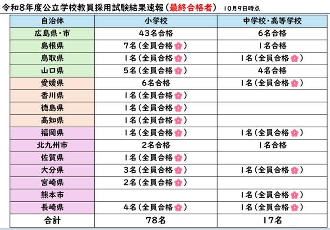 95名の学生が令和8年度公立学校教員採用試験に現役合格しました!