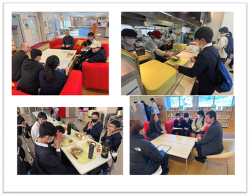 ランチでは、各自が食べたいものを購入し、小学校の給食とは違った雰囲気を楽しむ様子が見られました。学生も児童と楽しい食事時間を過ごすことができました。