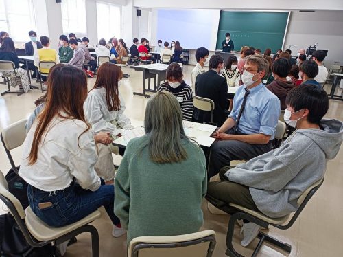 洋楽クイズは、これまであまりなじみのなかった方には難しかったと思います。どこかで聞いたことのある曲でしたが、歌詞を理解できるようになると、きっと英語も楽しくなることでしょう。短い時間でしたが、先輩と共に大学生活について語らうことは、とても貴重な時間になったと思います。