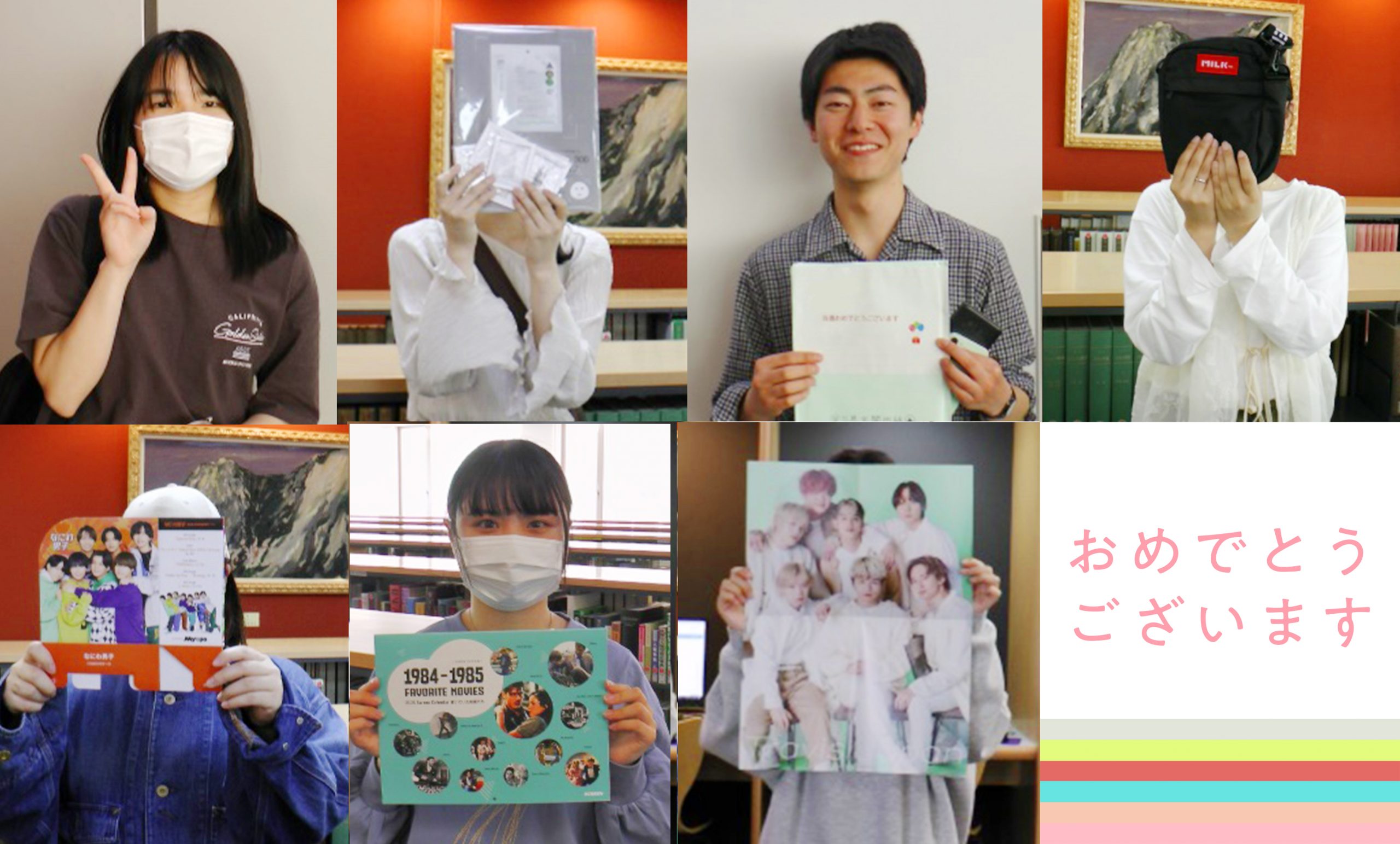 中でも特に人気だったのは、「化粧品サンプルセット」!なんと、20通もの応募がありました。その他のプレゼントも含め、15名の学生が見事当選しました!