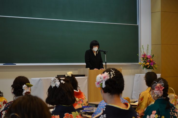 卒業生代表謝辞では、大学生活4年間を振り返り、友人や教員、今まで支援してくださったすべての方への感謝の言葉が述べられるとともに、大学卒業後もこの4年間で得た経験を糧に大きく成長していくことを誓いました。