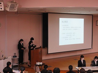 4月23日(土)に、4年生がこの2月から3月にかけて病院や介護老人保健施設で行った臨床栄養臨地実習Ⅰ・Ⅱ、給食経営管理臨地実習Ⅰの報告会を開催しました。従来通りの施設実習で学んだ内容以外に、オンライン実習や課題をご提示いただいた際の注意点なども発表しました。質疑応答も活発に行われ、有意義な報告会となりました。