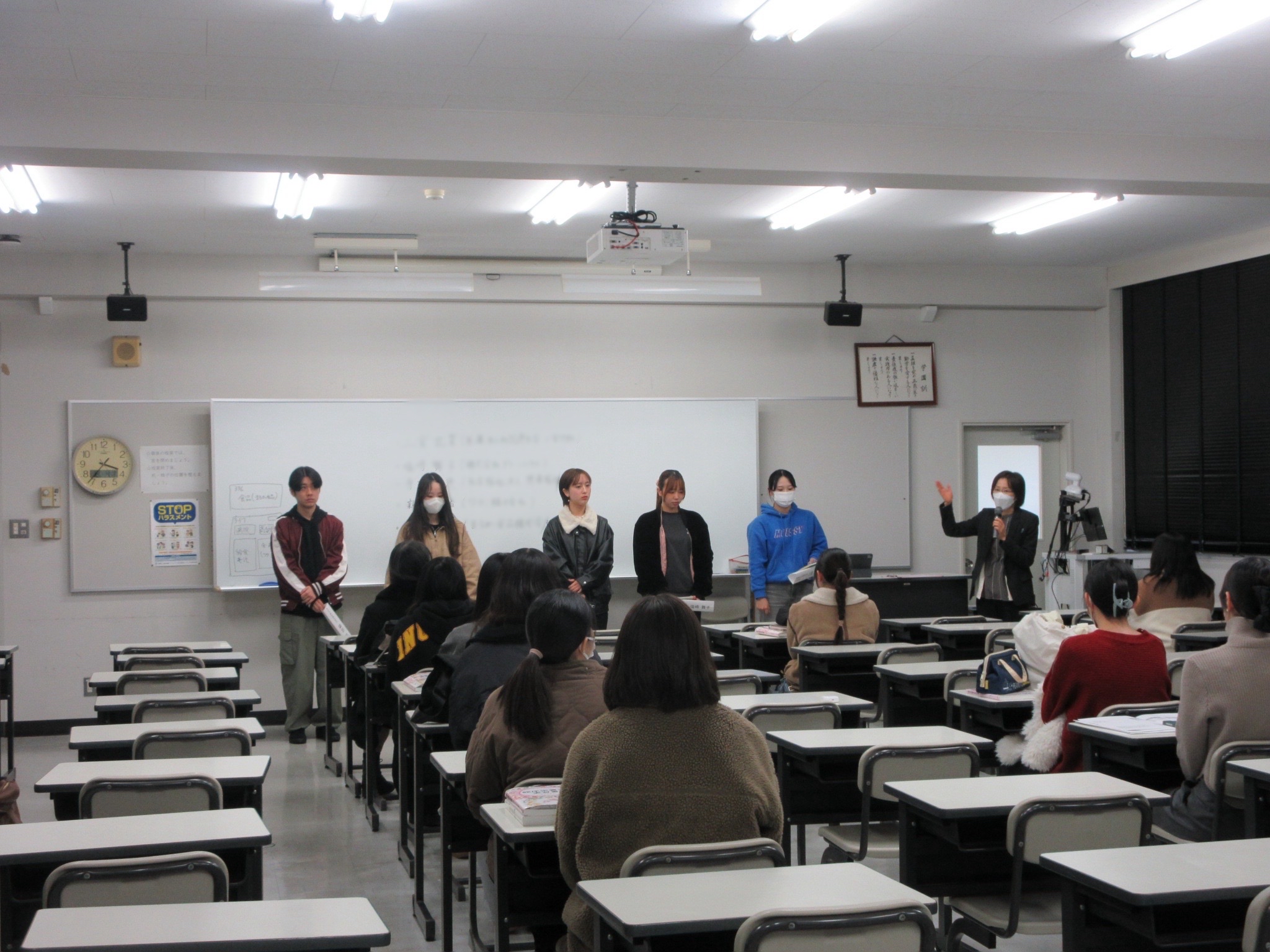 12月4日(木)に、人間栄養学科独自の就職支援行事である就活研究会を開催しました。この研究会は、内定をいただいている4年生が、これから本格的に就職活動を開始する3年生に向けてアドバイスや体験談を伝える取り組みです。