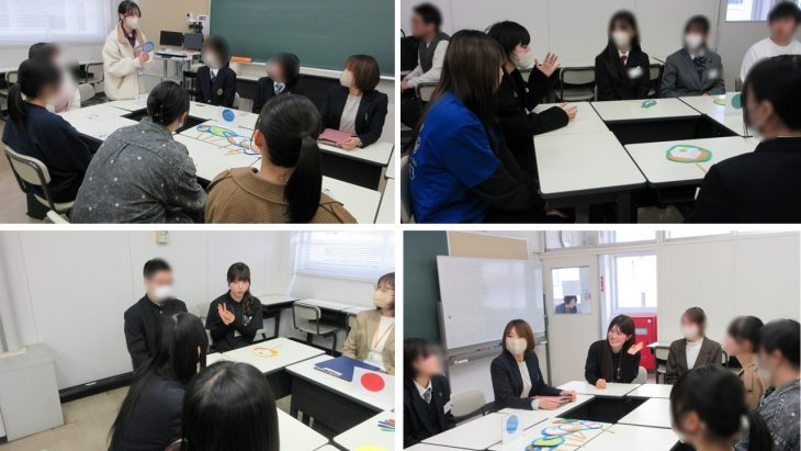 第Ⅲ部のグループ別懇話会では、生徒の皆さんと協力学生、そして教員が、グループごとにわかれて自己紹介やフリートークを行いました。初めは緊張した面持ちだった生徒の皆さんも、協力学生がリードしてくれるうちに徐々に打ち解けて会話が弾んだようです。大学生活を始めるにあたっての不安や悩みを少し解消できたのではないかと思います。