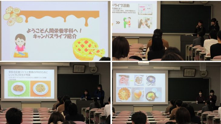 人間栄養学科の学科別イベントは、「見て、聞いて、知ろう!人間栄養学科のキャンパスライフ」をテーマに3部構成で行いました。