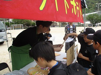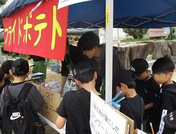 また、学生の卒業研究の取り組みの一環で小学生を対象にしたアンケート調査も実施させていただきました。協力者にはくじ引きをしてもらい、「当たりくじ」と引き換えに「フライドポテト」をプレゼントしました。おかげさまで多くの小学生のご協力を得ることができました。ご協力くださった皆様、ありがとうございました。