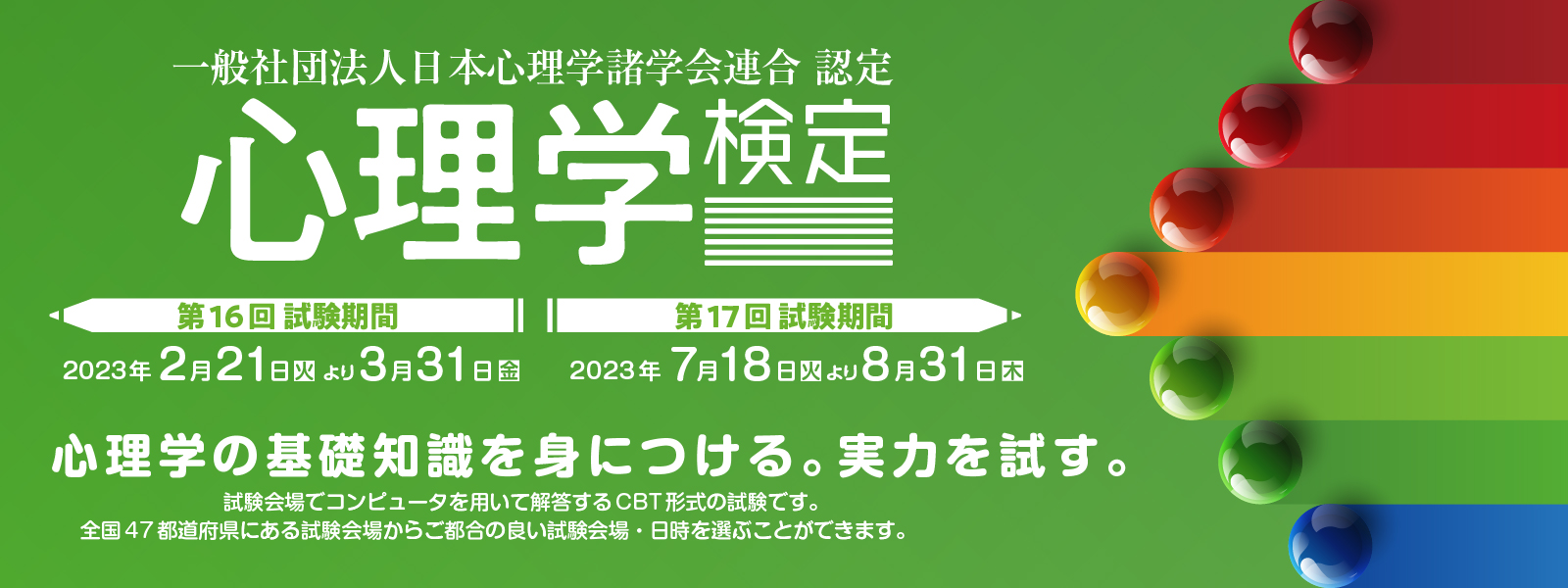 心理学検定とは、(一社)日本心理学諸学会連合が大学卒業レベルの心理学の基礎知識・能力の客観的到達度を認定するもので、心理学の基礎資格として広く活用されることを目的とした検定制度です。公認心理師国家試験においても心理学の幅広い知識が問われることもあり、心理学科では心理学検定の受検を学生の皆さんに推奨しています。