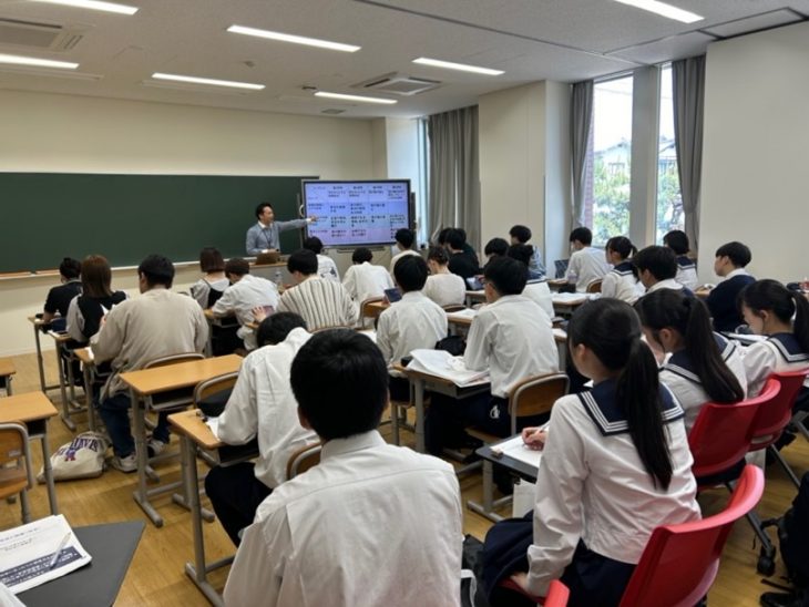 5月24日(金)に山陽高校の生徒34名と引率の先生1名が「ビジットキャンパス」で本学に来学しました。「ビジットキャンパス」とは,山陽高校で毎年実施されている進路学習で,進路イメージを明確にするために広島県内の大学を訪問し授業見学などを行うというものです。
