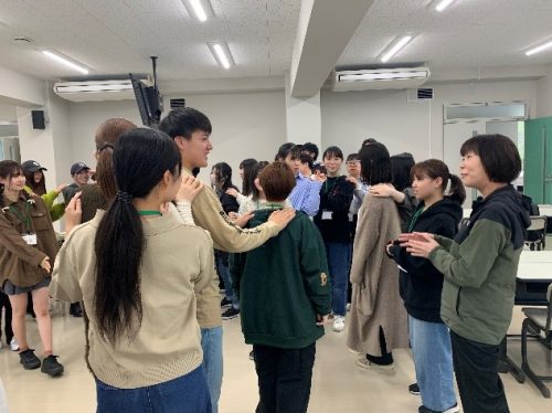 新入生にも笑顔がみられとても和やかな雰囲気でプログラムが進行しました。ゲームやクイズで新入生同士だけでなく、先輩や教員とも交流することができました。最後の質問タイムでは、新入生から先輩に、大学行事のことや授業のことなど積極的に質問している様子が見られました。新入生のみなさんが楽しんでおられる様子が多く見られました。