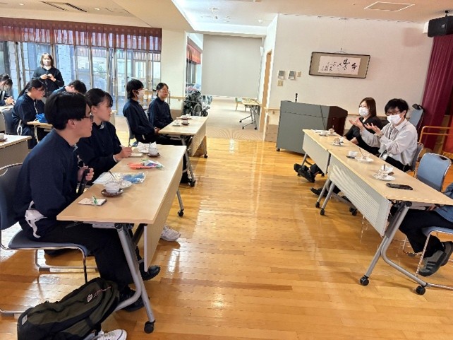 学生たちは、入居者の方々の生活の様子を見学したり、入居者とのコミュニケーションを実践したりして、介護福祉現場のイメージをより具体的に掴むことができました。