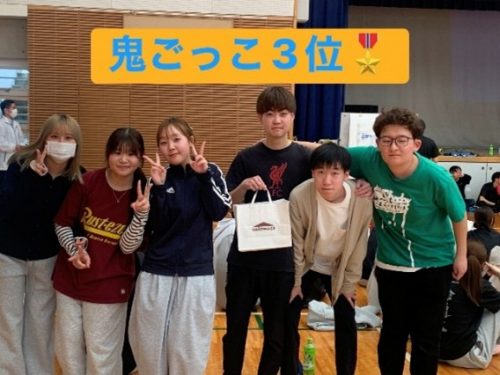 鬼ごっこには1年生が出場し、グループごとに力を合わせて協力してポイントを稼ぎ、見事、本学科の1年生チームが3位に入賞しました!