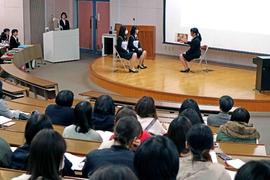 就職活動の方法は様々です。具体的な就職先の選択方法や活動内容など、質問形式で発表が行われました。